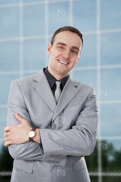 Успешный деловой человек на фоне офисного здания