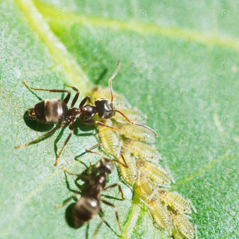 Муравьи питаются тлей
