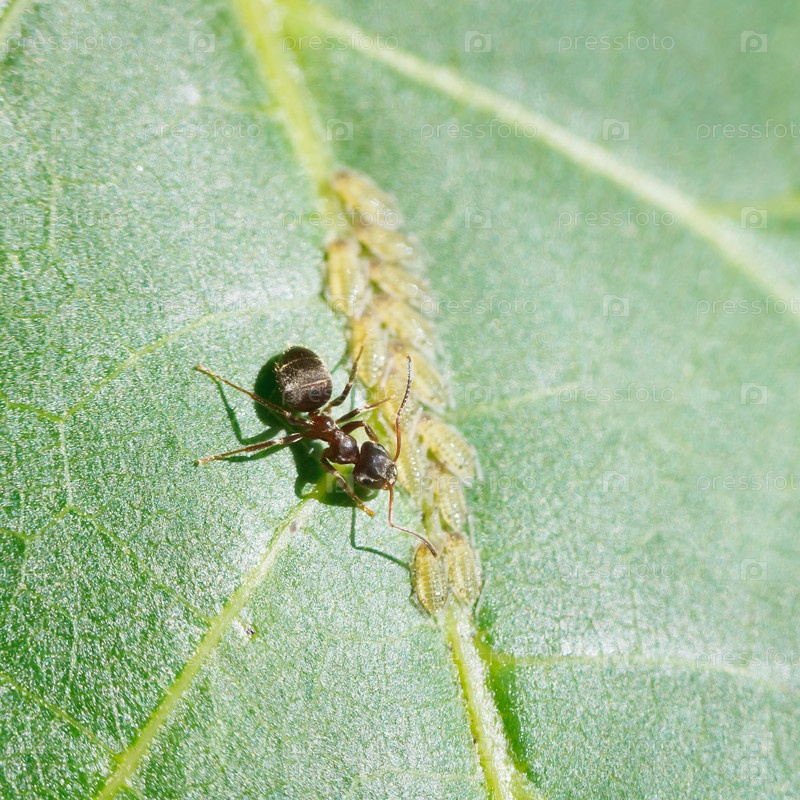 Муравей, извлечение нектар от тли