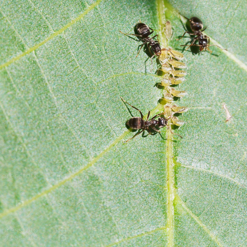 Муравьи питаются тлей