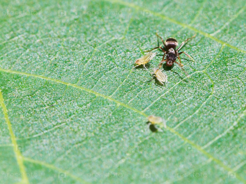 Муравьи питаются тлей
