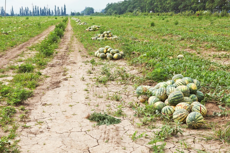Спелые арбузы на бахче