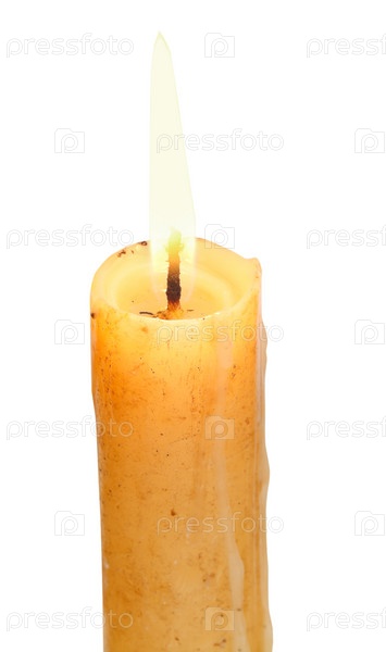 Горящая свеча на белом фоне