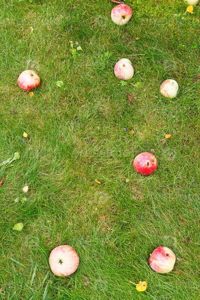 Спелые яблоки лежат на траве