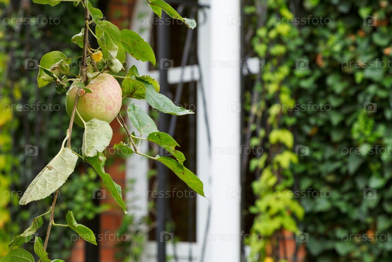 Яблоня перед входом в загородный дом