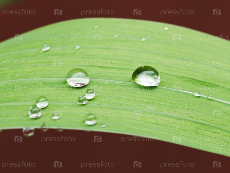 Дождевые капли на листе ириса