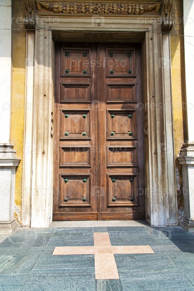 Дверь в Италии Милан старая церковь закрылась кирпич тротуарная