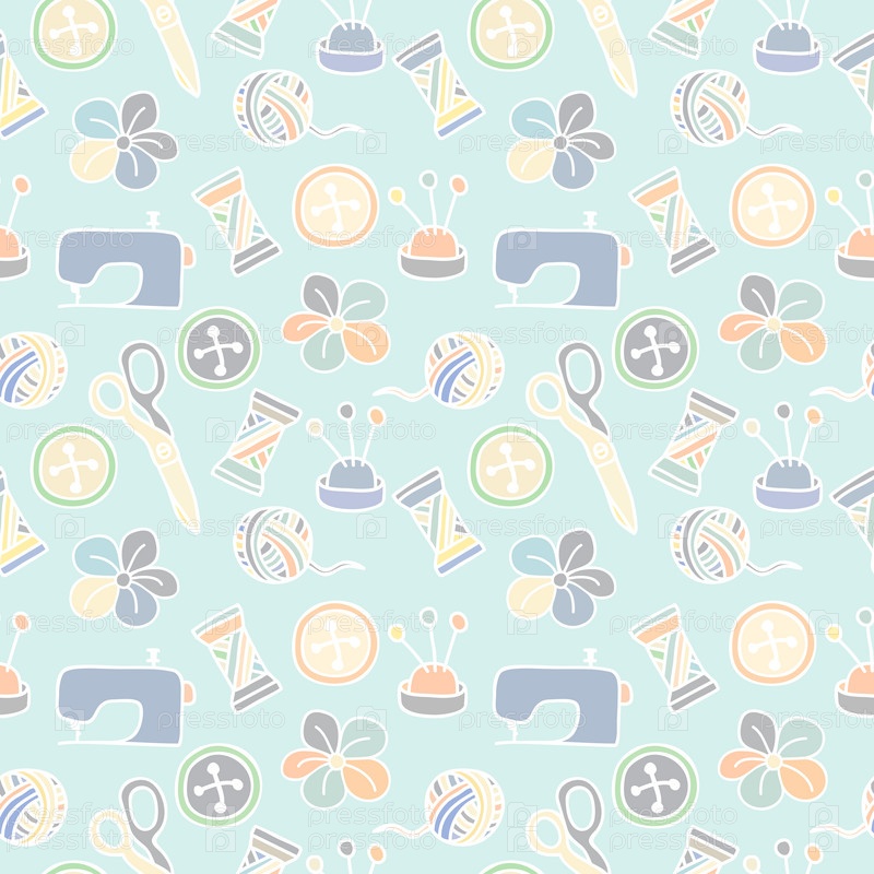 Мультфильм рисованной бесшовный паттерн с элементами шитье и крой