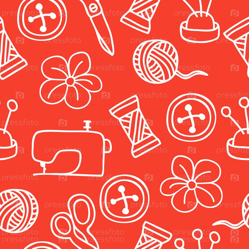 Мультфильм рисованной бесшовный паттерн с элементами шитье и крой