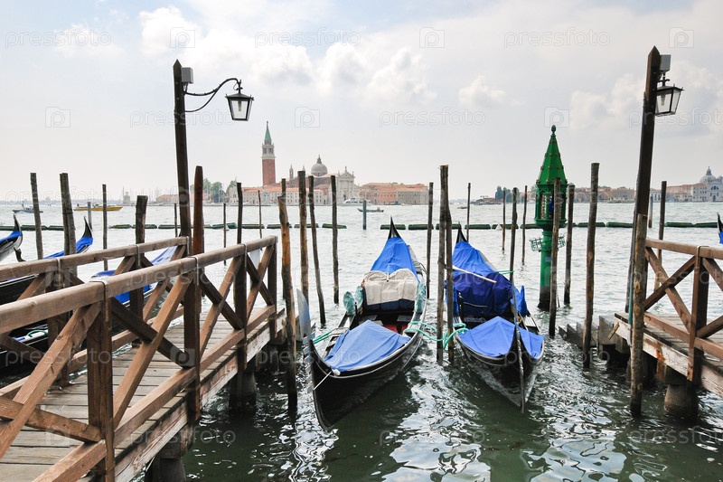 Гондолы и вид на Сан-Джорджо Маджоре в Венеции