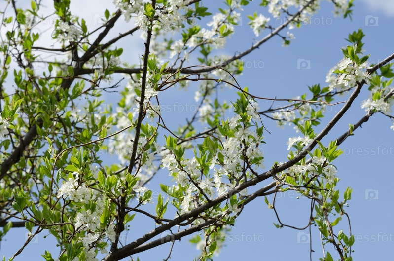 Яблоня в цвету на фоне неба