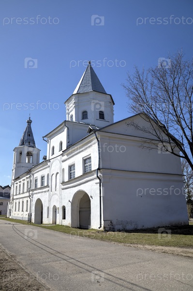 Колокольня Никольского собора и Воротная башня Гостиного двора. Ярославово Дворище, Великий Новгород, Россия