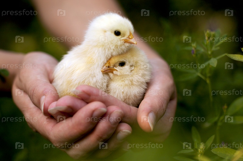 Маленькие цыплята в руках женщины