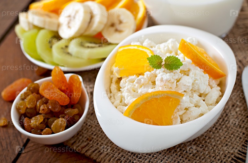 Творог с апельсином на завтрак крупным планом