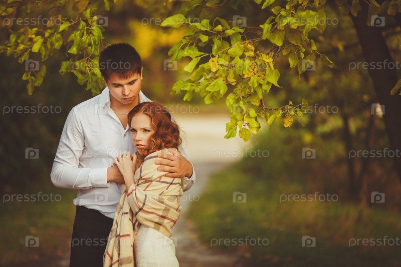 Молодой человек обнимает девушку в парке
