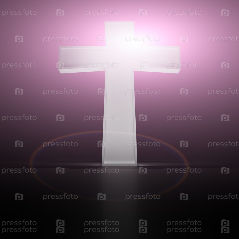 Светящийся христианский крест на фиолетовом фоне