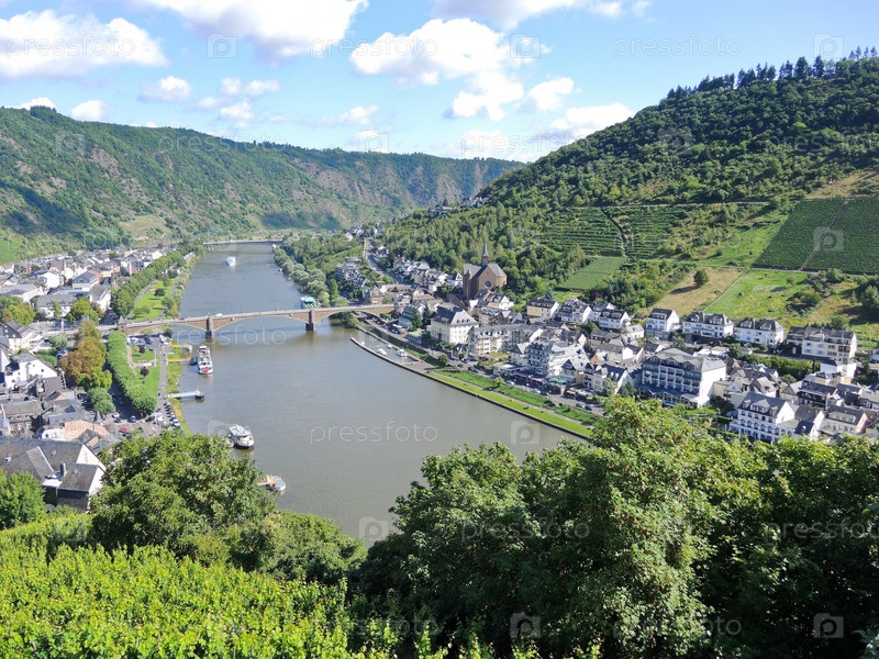 Река Мозель, виноградники, город Кохем в Германии