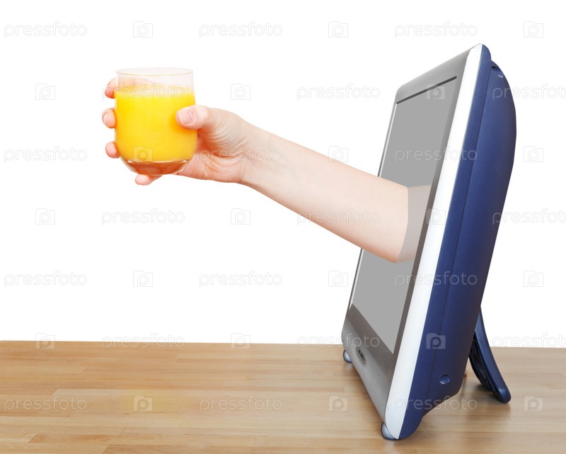 Рука со стаканом в телевизоре