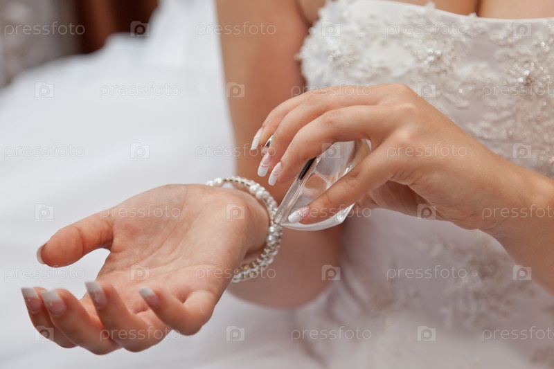 Невеста брызгает духи себе на запястье