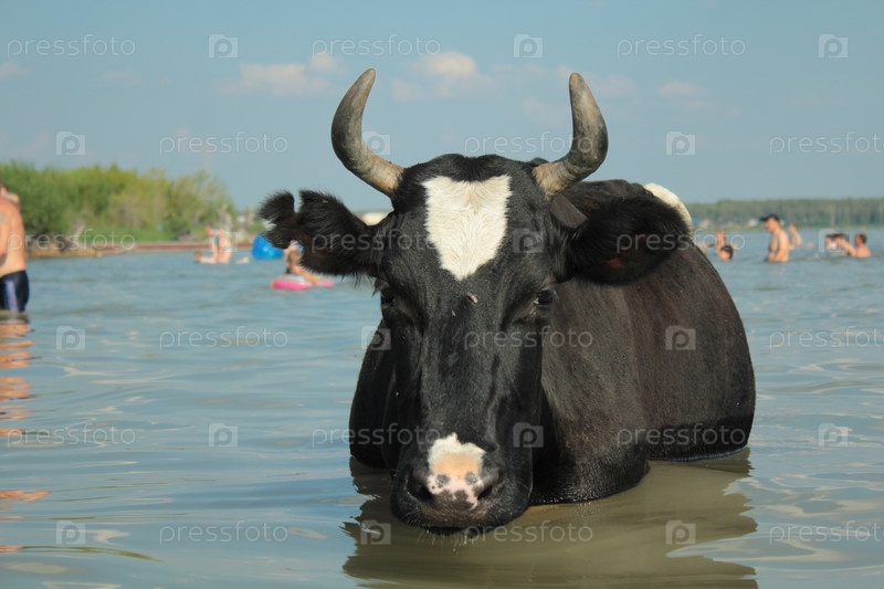 Корова на городском пляже