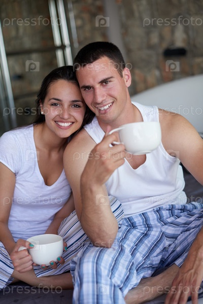 Пара отдыхает и получает удовольствие в постели