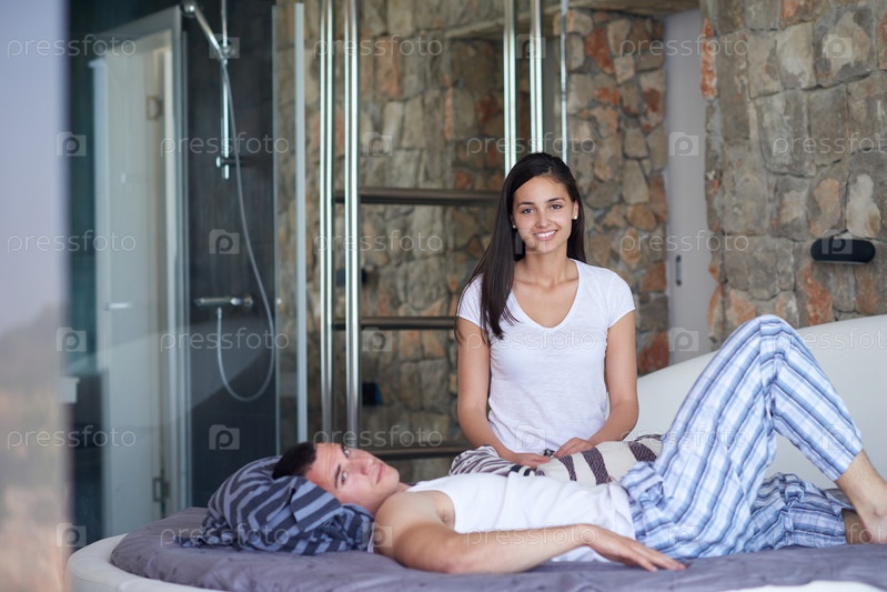 Пара отдыхает и получает удовольствие в постели