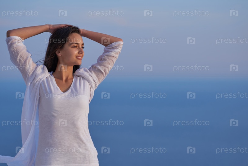 Молодая женщина наслаждается закатом