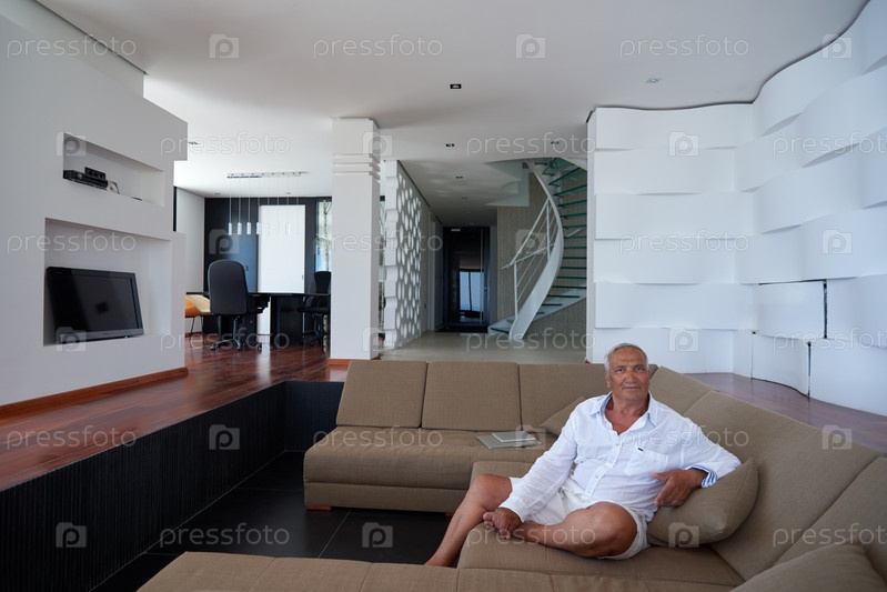 Пожилой мужчина отдыхает на диване