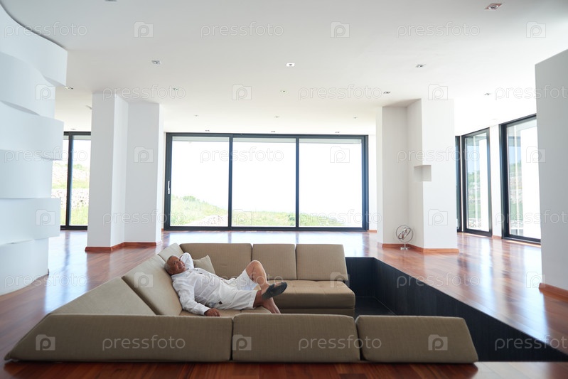 Мужчина отдыхает дома на диване
