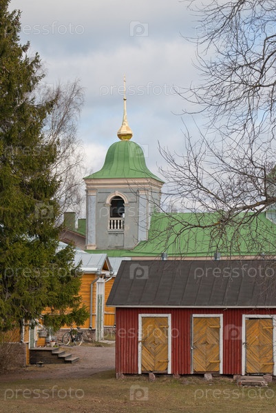Церковная колокольня с позолоченным куполом