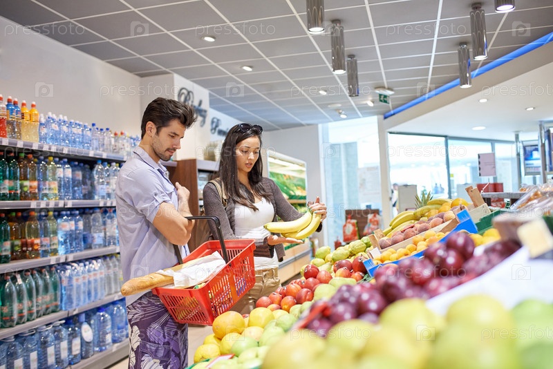 Пара делает покупки в супермаркете
