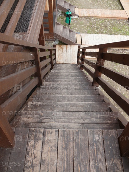 Деревянная лестница с перилами, вид сверху