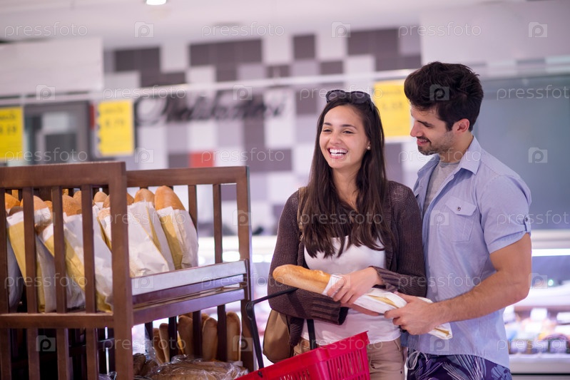 Пара делает покупки в супермаркете