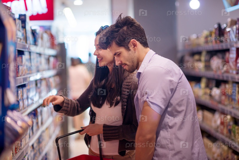 Пара делает покупки в супермаркете