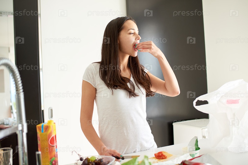 Молодая женщина готовит на кухне