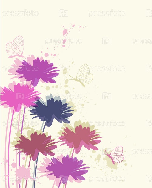 Фон с ромашками и бабочками