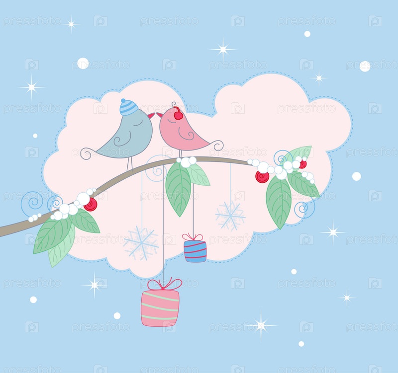 Новогодний фон с птичками