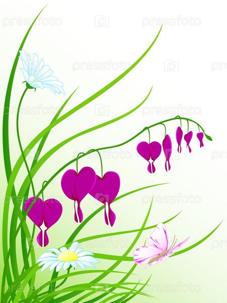 Зеленая трава, цветы и бабочки