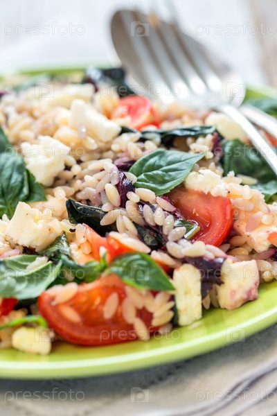 Салат с макаронами, базиликом и сыром фета
