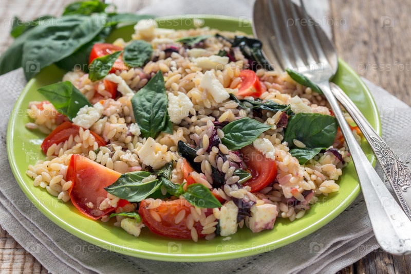 Салат с макаронами, базиликом и сыром фета