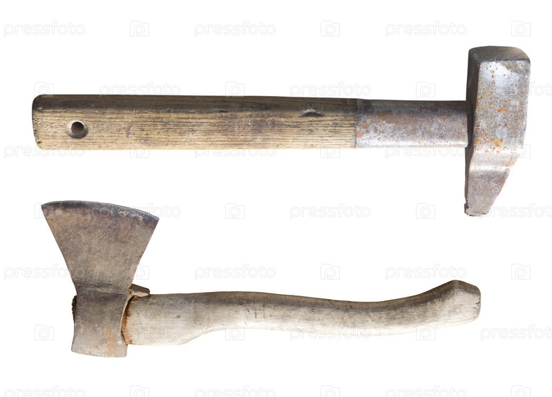 Молоток и топор на белом фоне