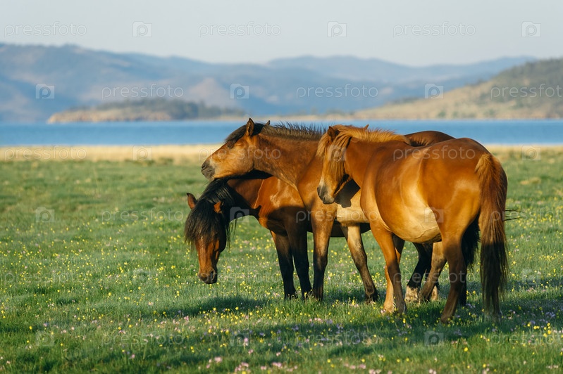 Лошади в природном заповеднике озера Байкал