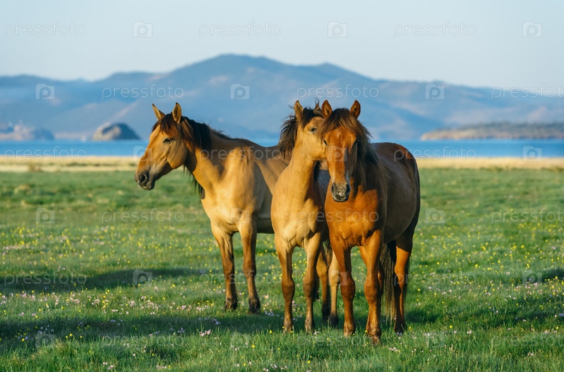 Лошади в природном заповеднике озера Байкал