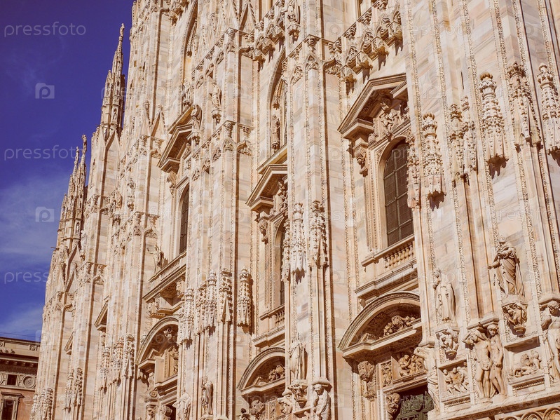 Винтаж Глядя Миланский собор ака Дуомо ди Милано готическая церковь