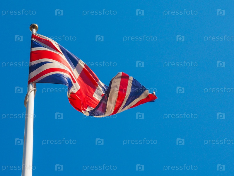 Государственный флаг Соединенного Королевства, Европы, плавающие в Ветер над голубое небо