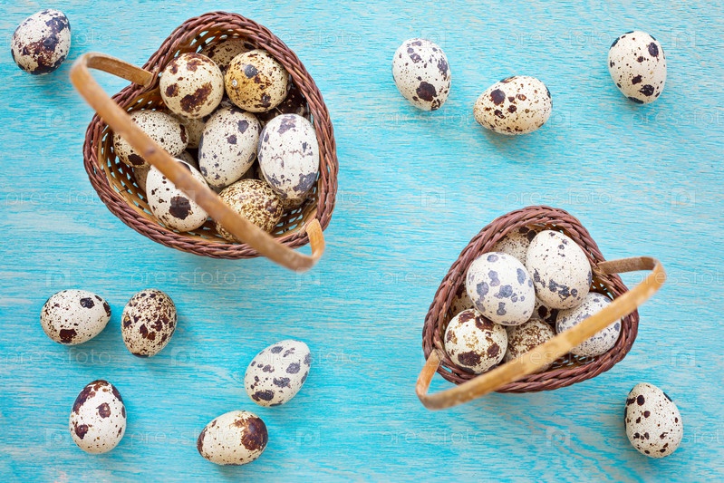 Перепелиные яйца в корзинах