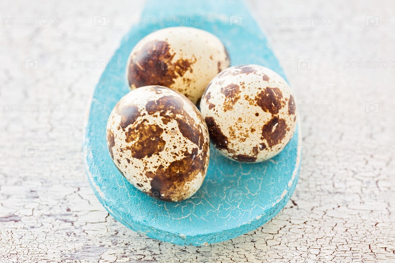 Перепелиные яйца на деревянной ложке