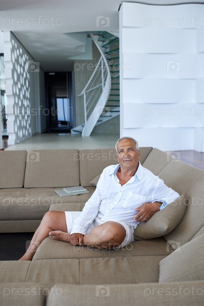 Пожилой мужчина отдыхает на диване