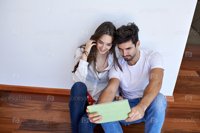 Пара с планшетом в современном доме