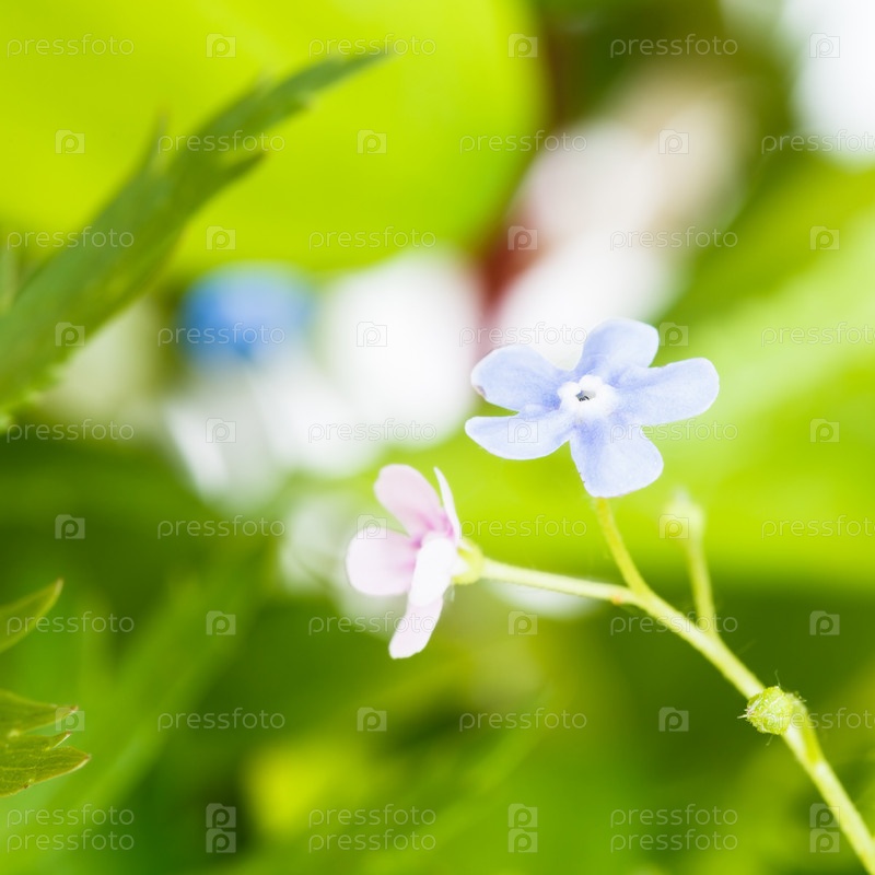 Незабудка голубые и розовые цветы на зеленом газоне